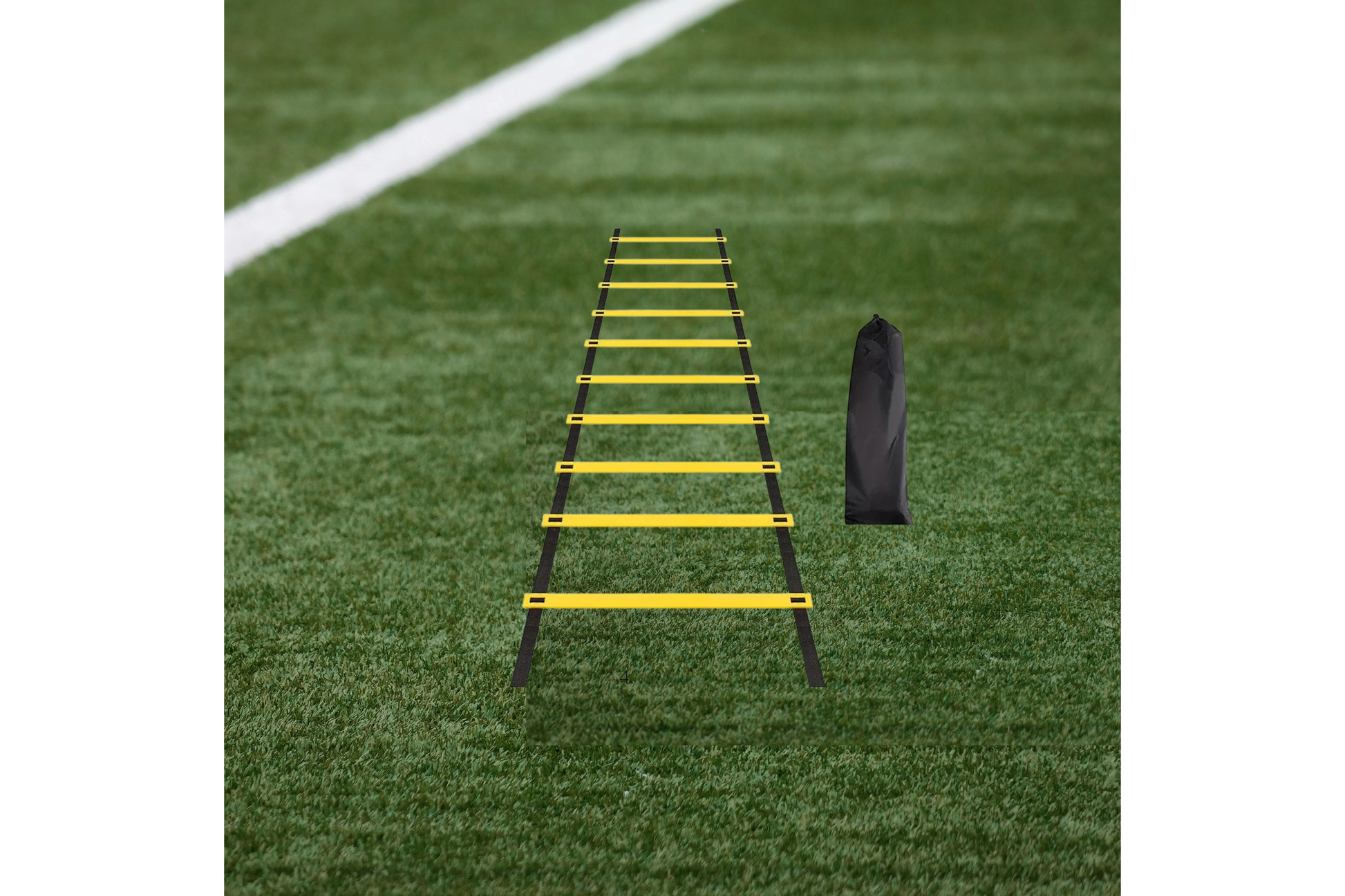 Nylon-Straps sorgen für Stabilität, die flachen Sprossen für präzises Footwork – egal ob im Profibereich, im Jugendtraining oder für Home-Workouts.