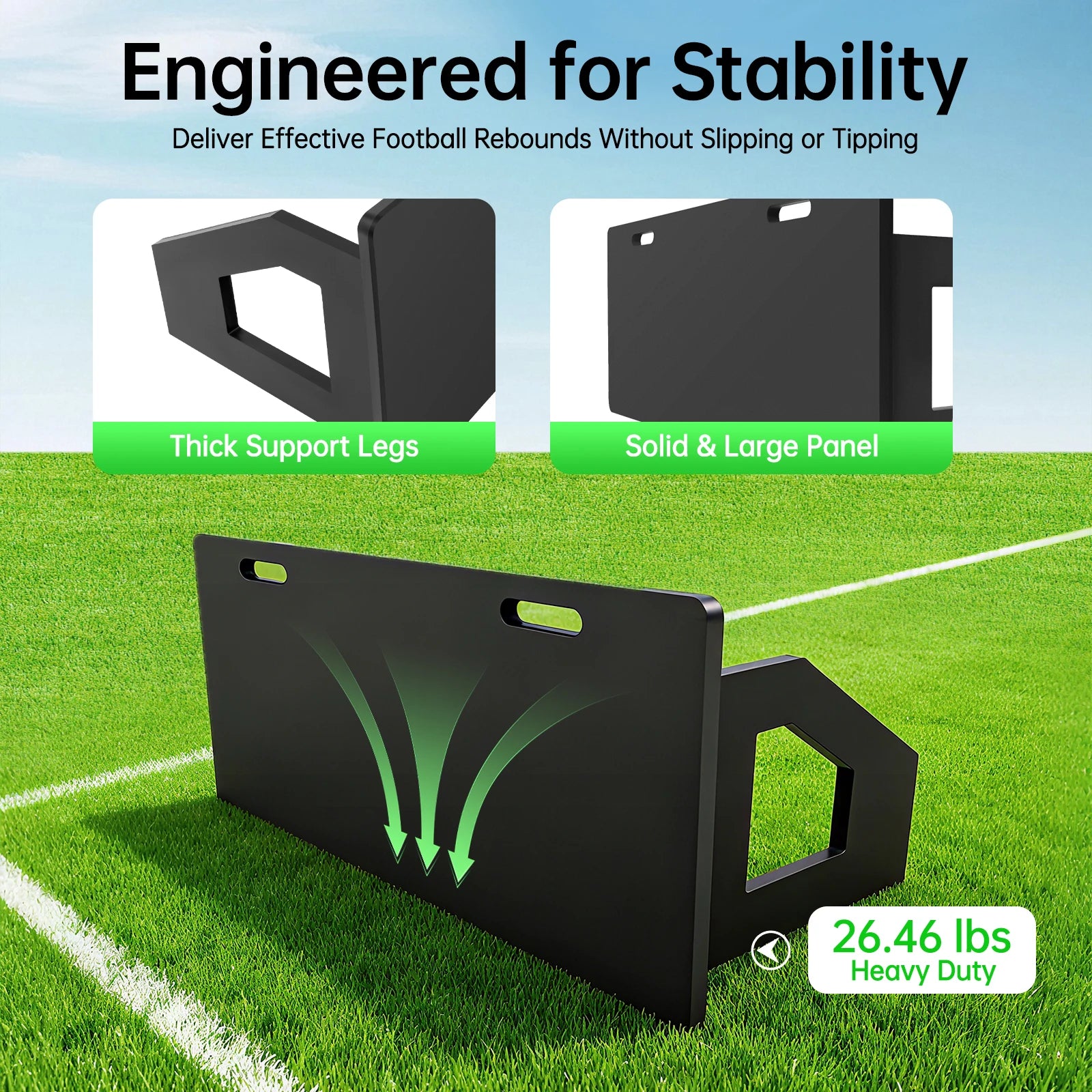 Das ProGrind Rebound Board V2 – Elite Passing & Reaction ist dein Tool für präziseres Passspiel, bessere Ballannahmen und schnellere Reaktionen unter Druck. Durch den stabilen HDPE-Body mit Eisenrahmen prallt der Ball kontrolliert zurück – flach, hart und realistisch wie im echten Spiel.